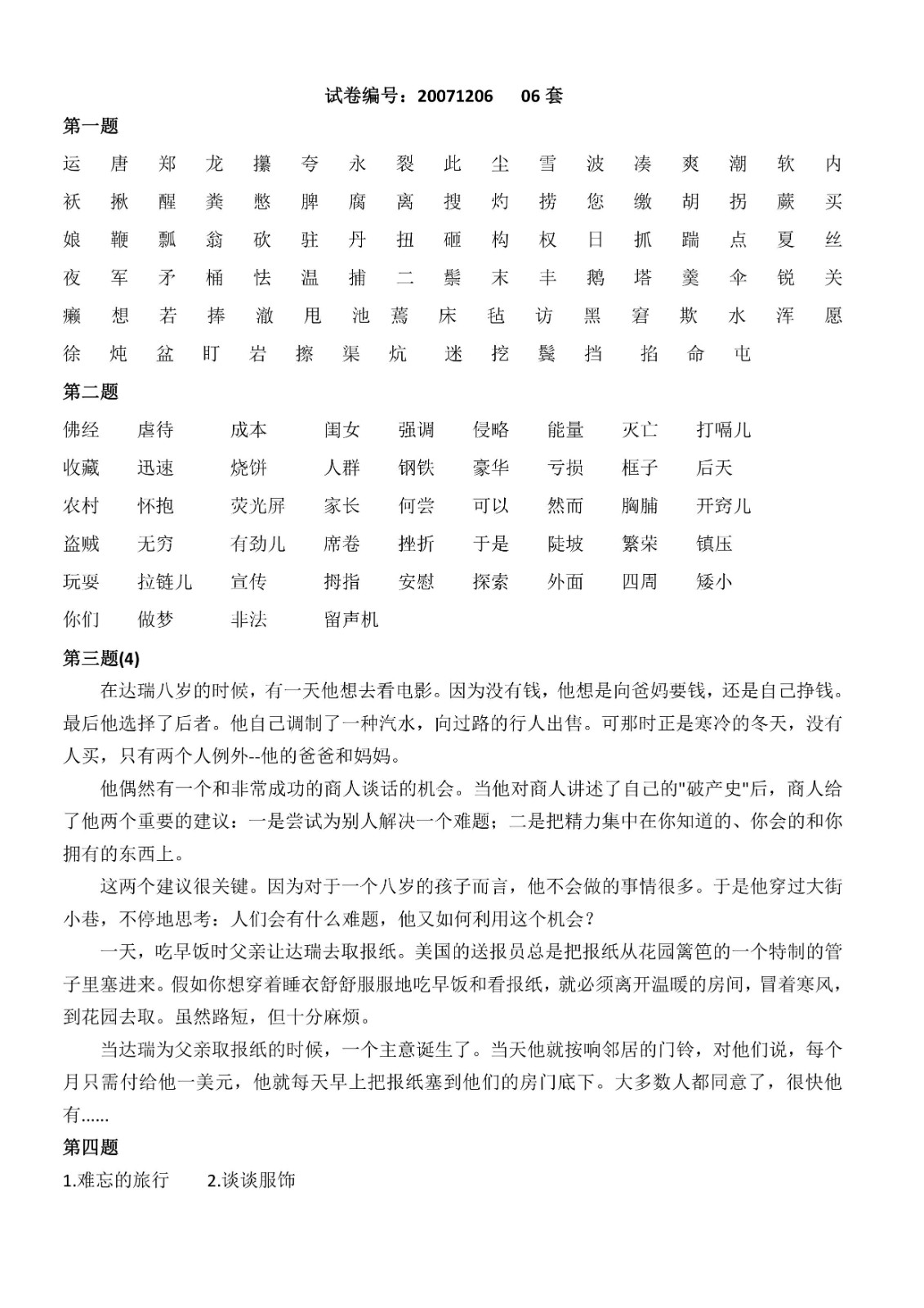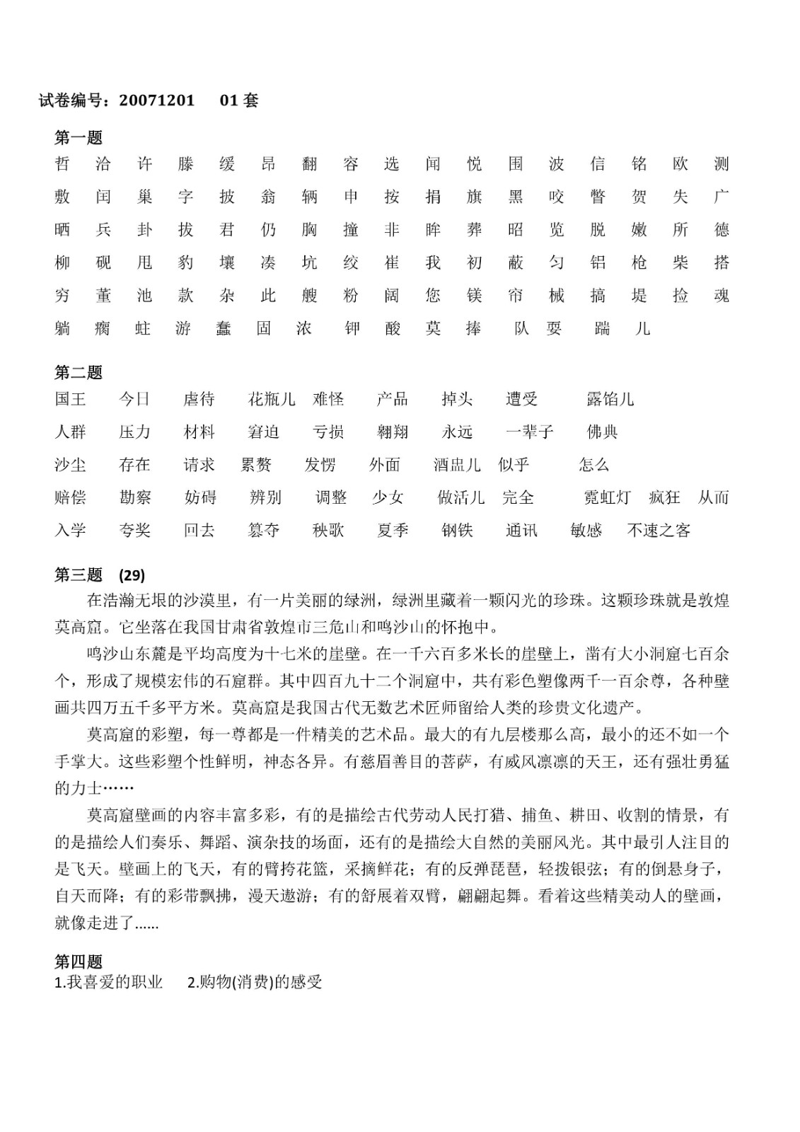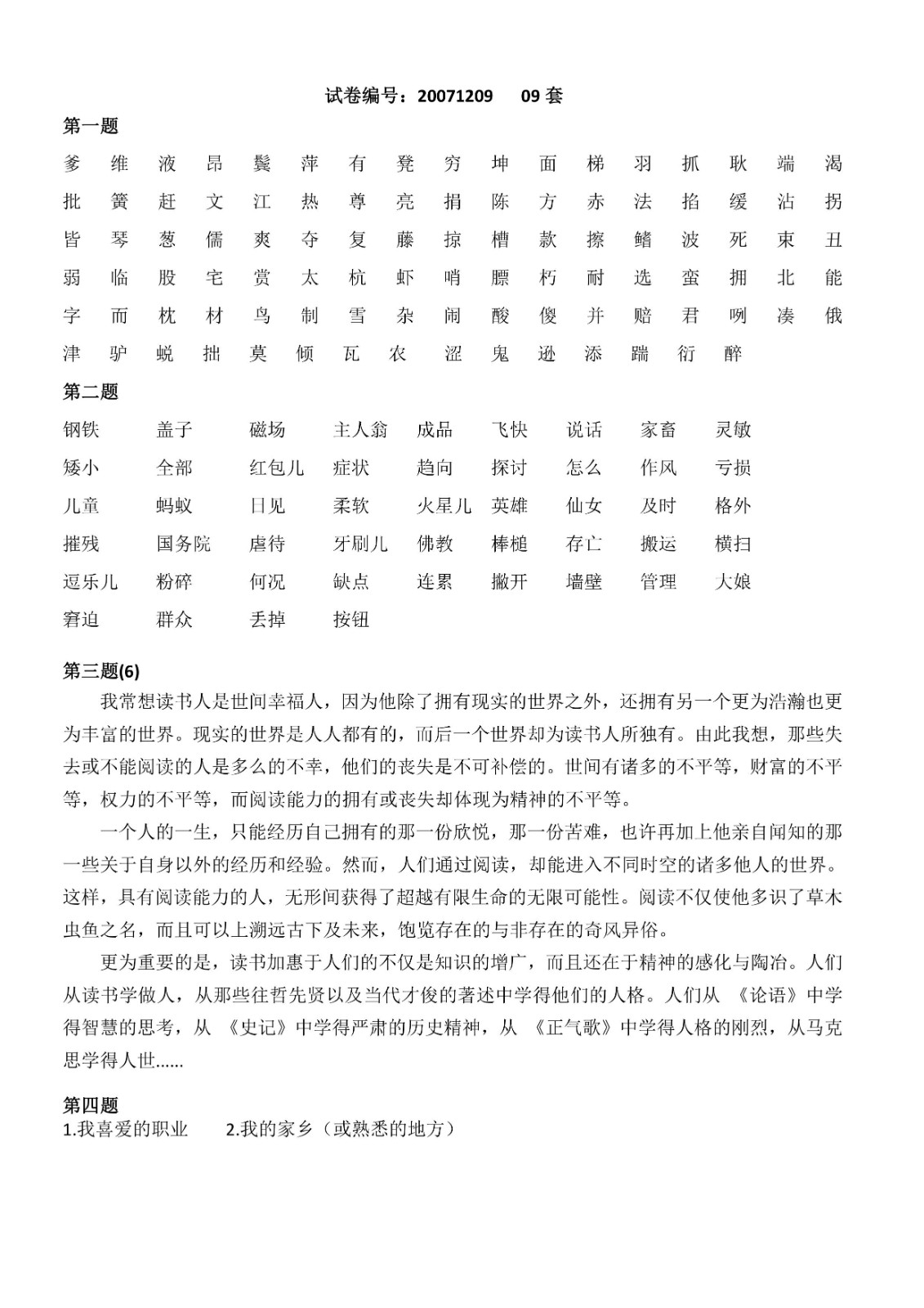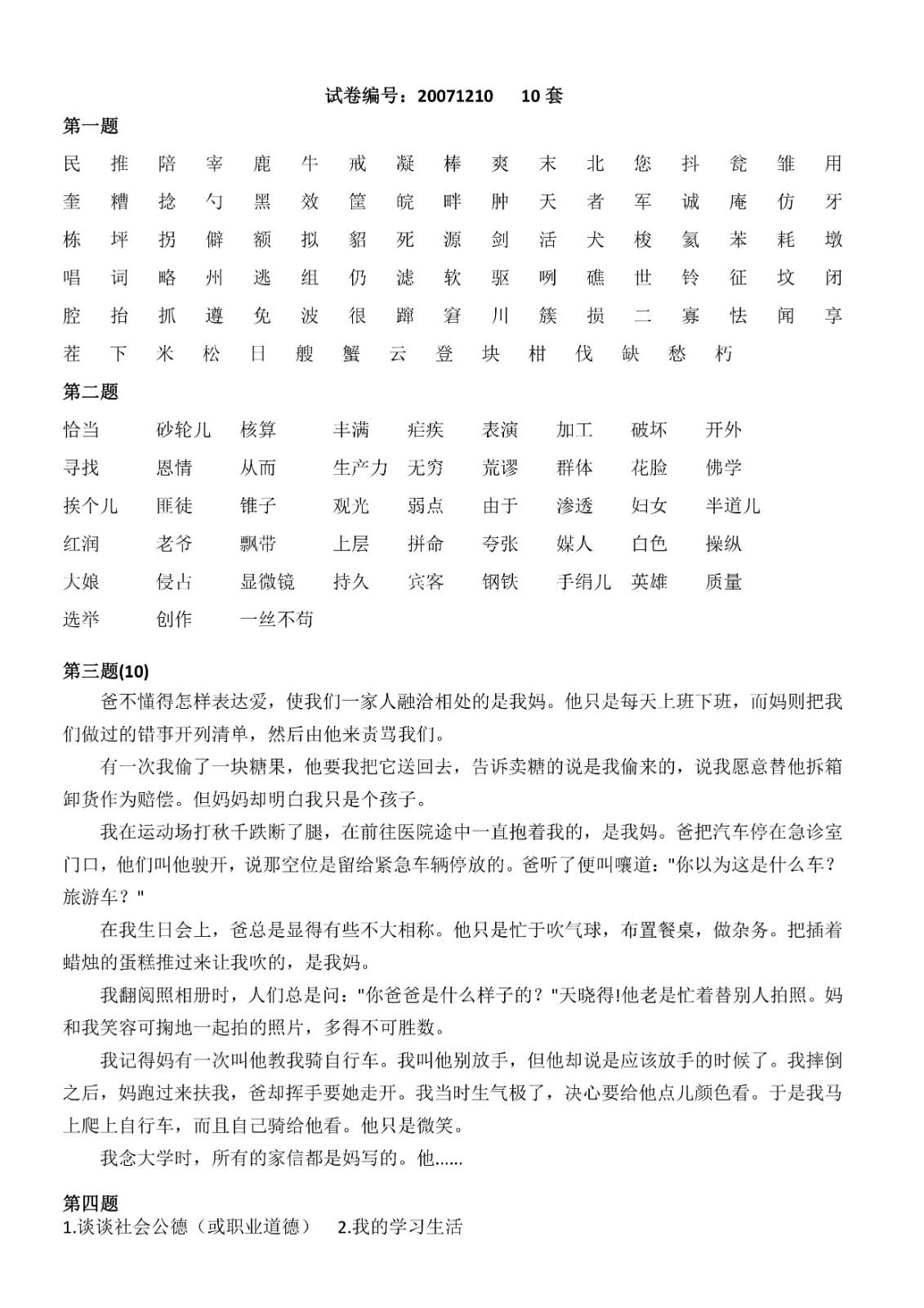 您现在的位置是:首页>文章 文章 普通话测试1-10套 发布人:黄蔚蕖 日期:2022-03-29 11:11浏览次数:3910点赞次数:0 第1-10套 第1-10套 很赞哦!0 上一篇 已经没有了 下一篇 普通话测试11套 第十一套 相关文章 普通话测试1-10套 普通话测试11套 普通话测试12-13套 普通话测试14套 普通话测试15套 普通话测试16套 普通话测试17-20套 普通话测试21-36套 普通话测试攻略 国家普通话水平考试培训教程