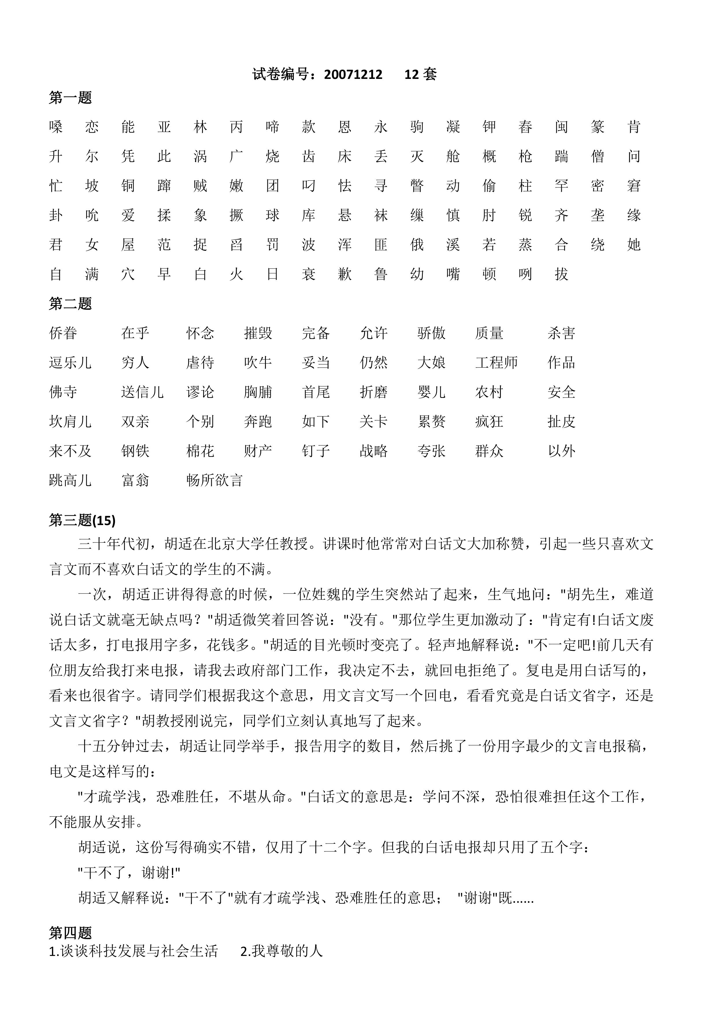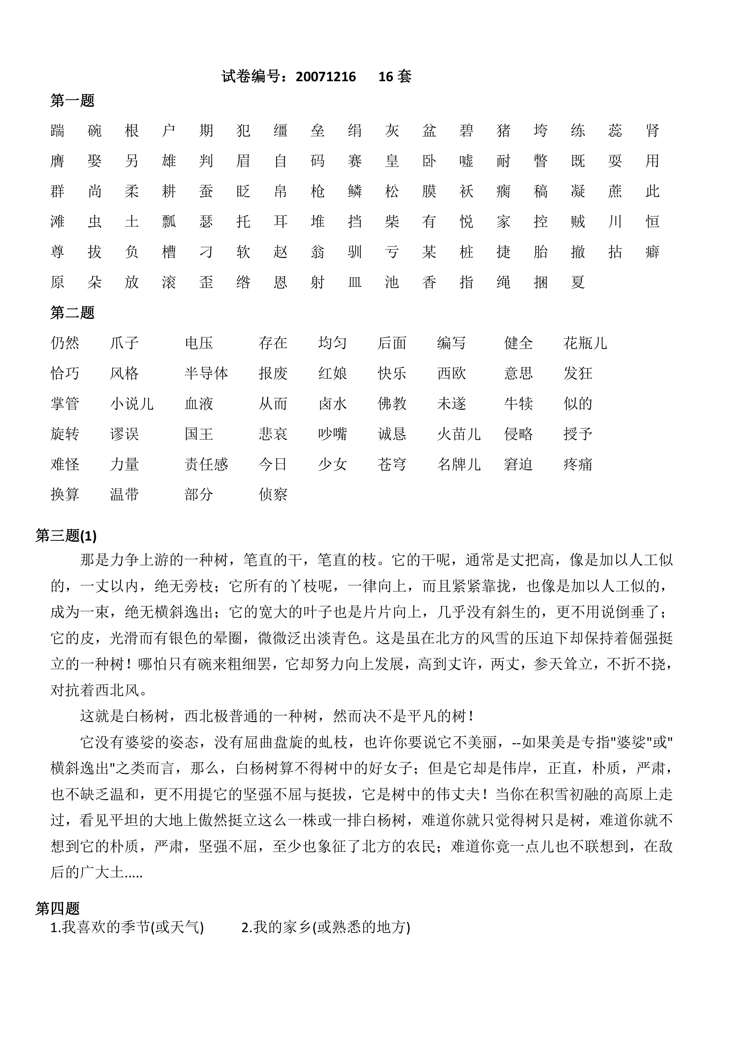 普通话测试16套