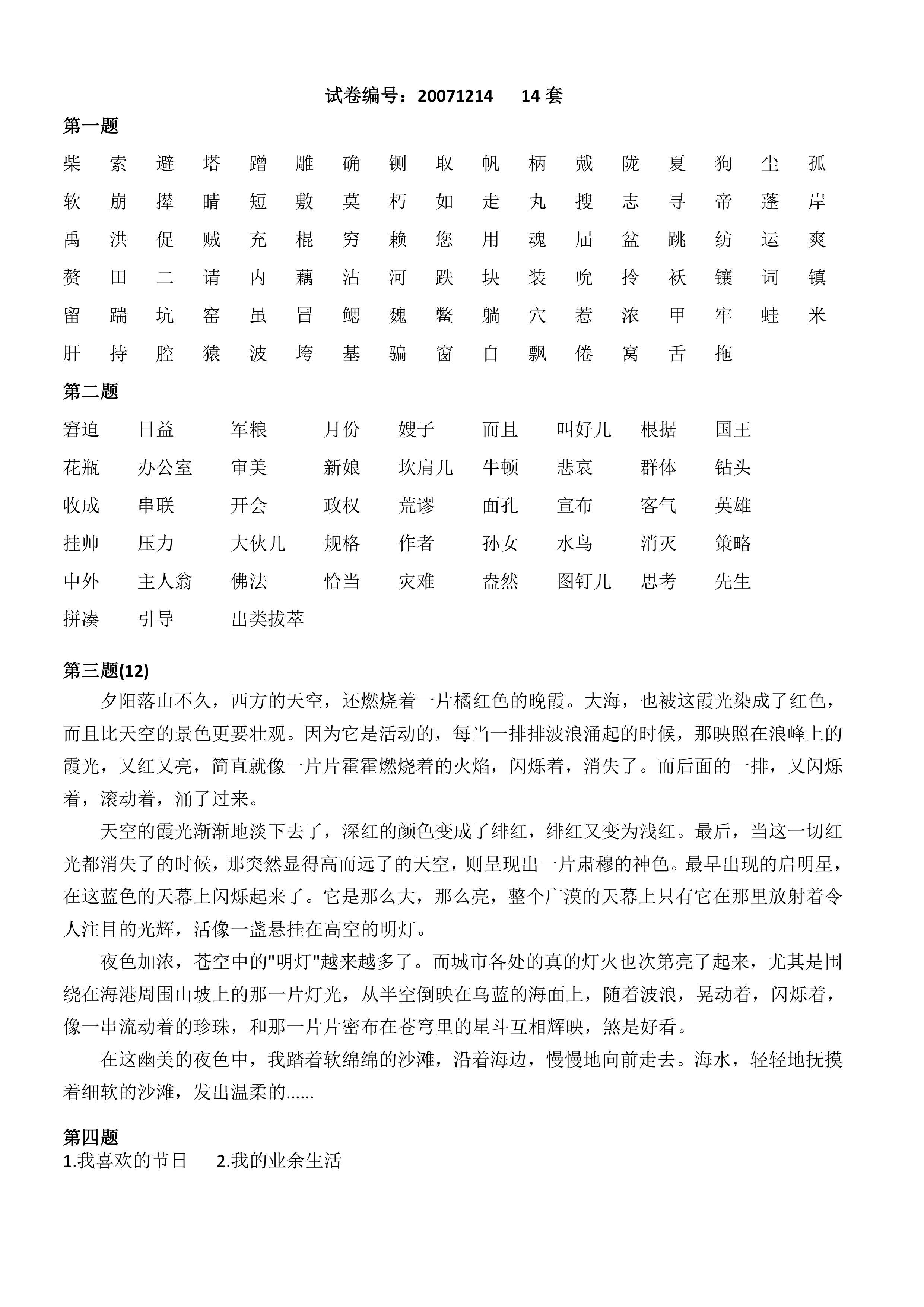 普通话测试14套
