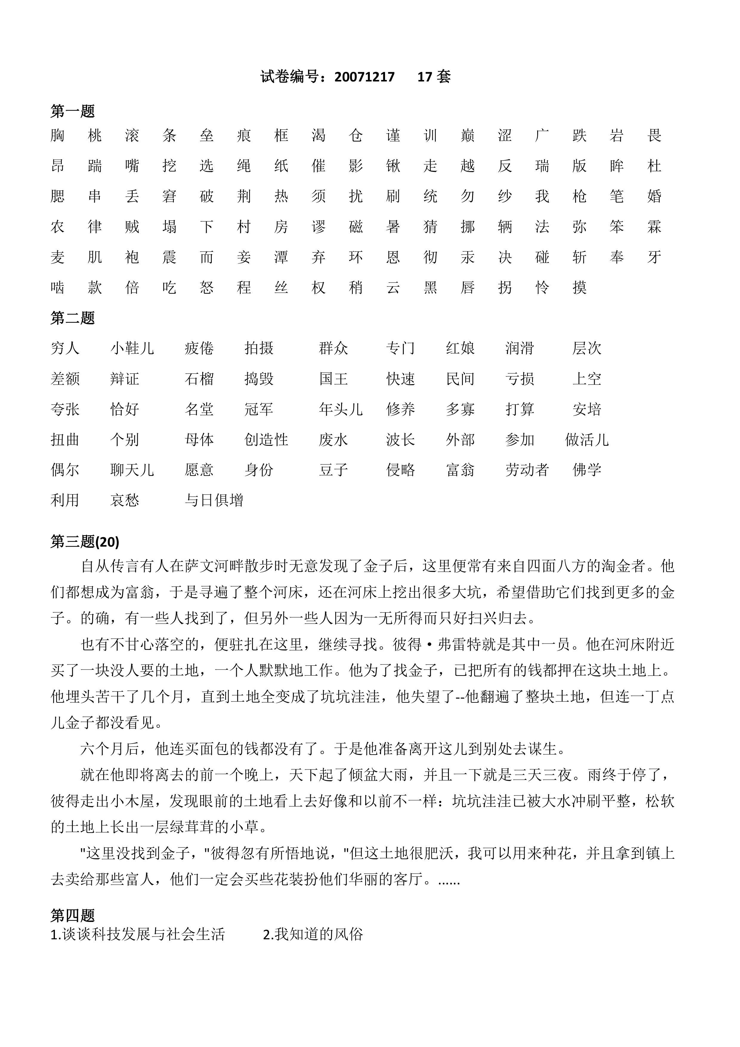 普通话测试17-20套
