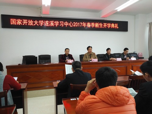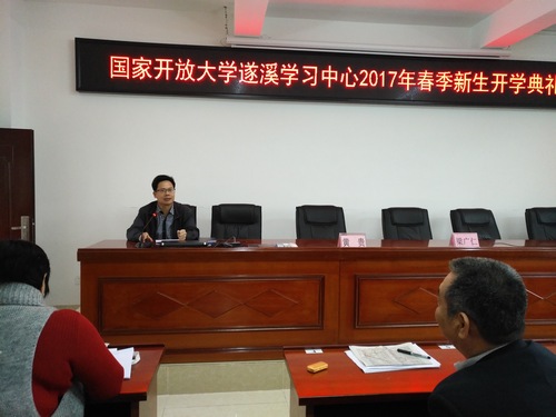 3月26日上午,遂溪电大在三楼会议室隆重举行了2017年春季新生开学典礼,有130多名新生参加了开学典礼??У淅裼煞止芙萄У母毙3ね醮褐鞒帧?br/> 遂溪电大校长梁广仁代表学校对新学员表示热烈的欢迎,接着向学员们介绍国家开放大学和遂溪电大的基本情况,最后对新学员提出几点希望:1、要珍惜学习机会,树立终身学习的理念2、要培养自主学习的习惯3、要自觉遵守各项规章制度4、要坚持诚信学习、诚信考试,自觉维护国开学员的荣誉和形象??У淅窠崾?,教务处陈峭主任向新学员介绍了新班班主任和布置新学期的学习工作。
