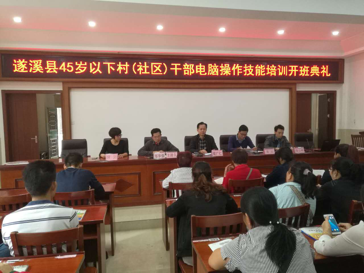 [遂溪电大 蔡军 报道] 为进一步提高我县村(社区)干部计算机理论和运用水平,更好地处理村务的日常工作,更好地服务村民。11月6日上午,我县45岁以下村(社区)干部电脑操作技能培训开班典礼在遂溪县广播电视大学8幢1楼大会议室举行。第一期学员共86人参加,我校领导班子成员、县委组织部组织组组长易云、副组长潘云峰等出席了开班典礼。