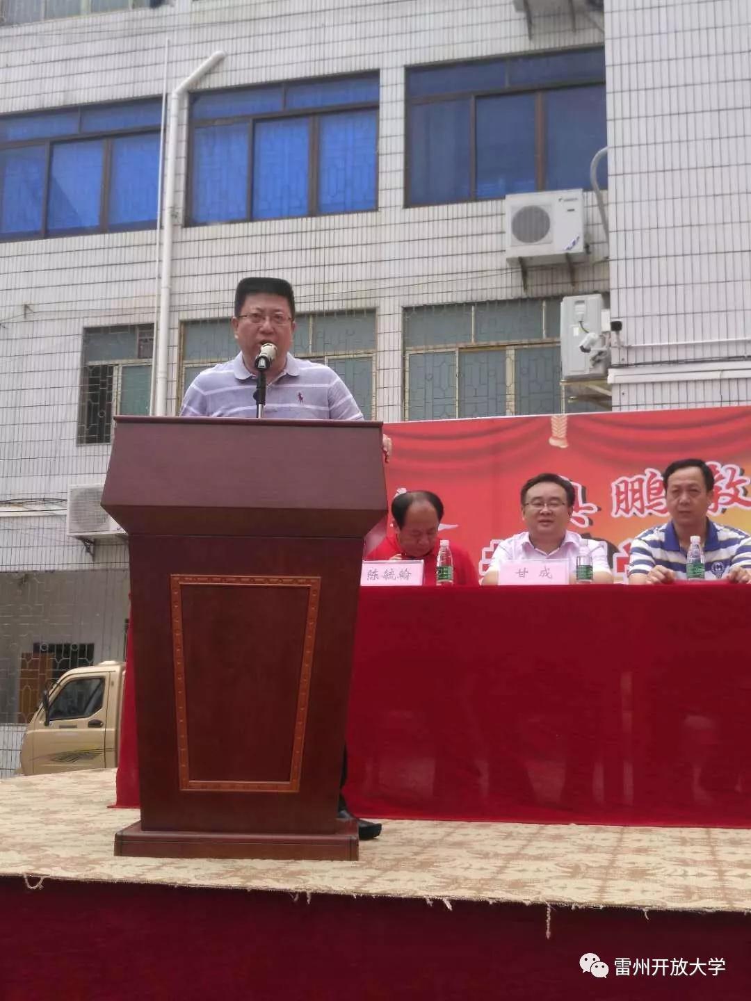 雷州市副市长何培烈发表了激情洋溢的讲话。他表示,要想方设法创设有利条件提升教师的学历,提高全市的教育教学水平要以抓铁有痕、踏石留印的决心和行动,齐心协力创建"广东省推进教育现代化先进市",精血诚聚推动我市的教育事业实现新跨越。他强调,教育教学永远在路上,学习永远在路上……各位毕业生在岗位上要勇于担当、善于修为、乐于学习、苦干实干、全力以赴,敲响雷州教育铿锵前行的最强音!