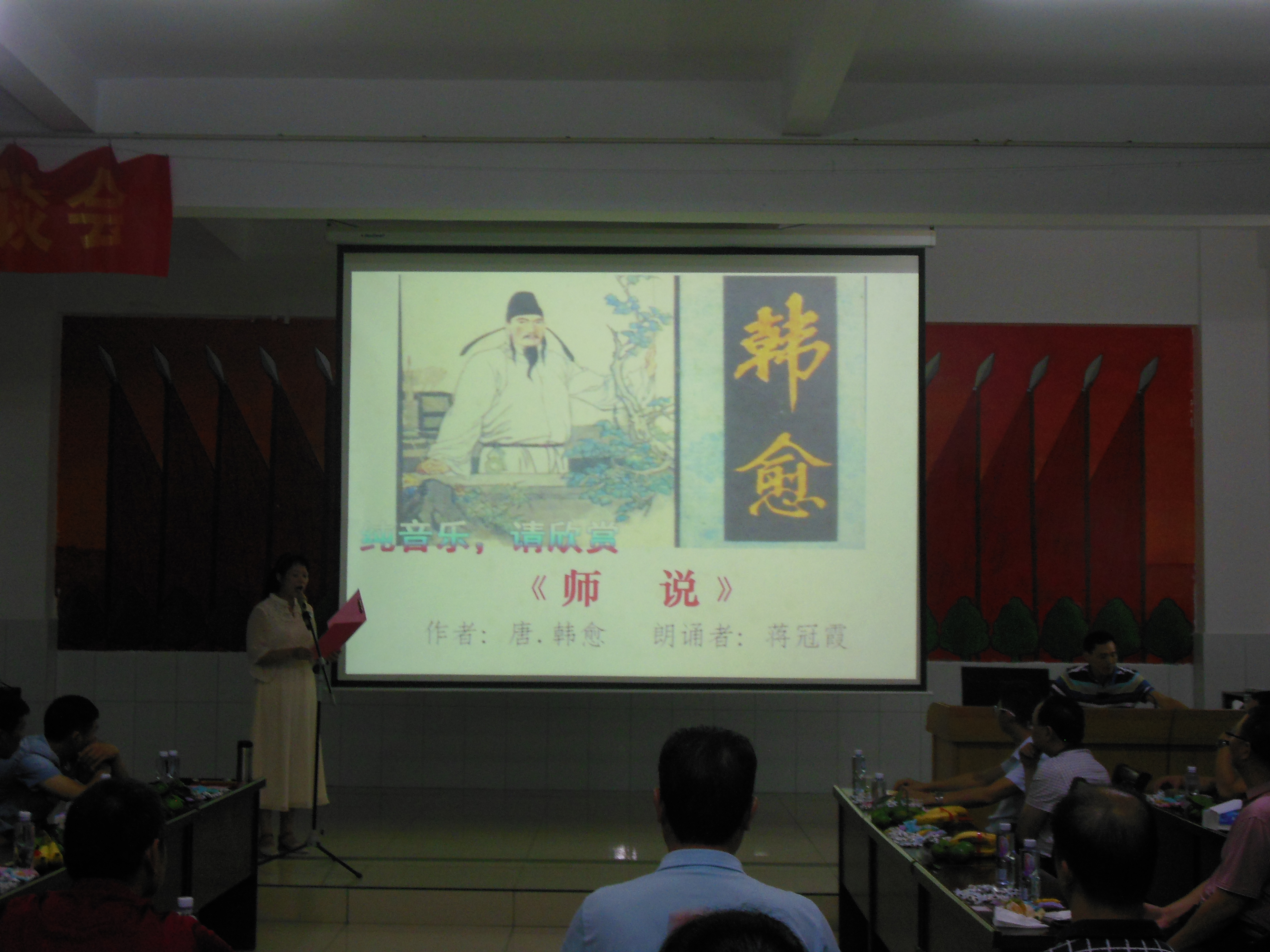 座谈会后,进行了才艺表演环节,干部教职工与嘉宾们用各自精心准备的节目共同庆祝教师节。首先,蒋冠霞老师深情朗诵的诗词《师说》拉开了序幕,紧接着4名老师依次朗诵了李向明创作的大海系列散文,展现了电大教师积极向上的精神风貌。随后,广东音乐演奏组带来的扬琴和高胡合奏、岭南春书画院沈志毅老师的吉他弹唱以及郭晓萍老师的古筝演奏,一次次将活动推向高潮,现场不时响起一阵阵掌声。最后,才艺表演在春晖学校赖晓桃老师电子琴弹奏的《每当我走过老师窗前》的优美琴声中结束。
