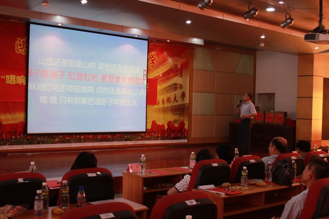 饶腊年副书记为大家高歌一曲《篱笆墙的影子》