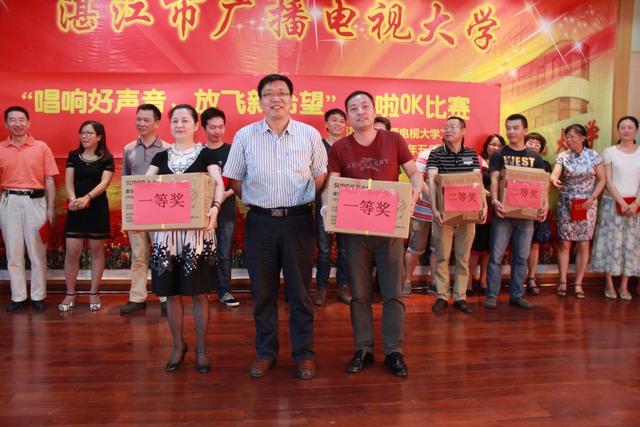 为进一步丰富学校教职工的精神文化生活,促进校园精神文明建设,加强教职工之间的友谊和交流,增强教职工队伍的凝聚力和向心力,5月19日下午,学校工会举办"唱响好声音,放飞新希望"教职工卡拉OK比赛。这次比赛抽签决定比赛顺序,3位评委按评分细则对选手的表现进行打分,比分汇总后决出名次。24名教职工、22个节目参加了比赛。比赛中,选手们专注演唱的热情、开心快乐的笑容,赢得大家的阵阵喝彩。在台下观看比赛的教师评委们或点头称是,或轻声唱和,每首曲毕,都报以热烈的掌声,为演唱的选手送上真诚的鼓励。经过紧张激烈的角逐,文法教研室柯小秋和培训科王文俊老师获得此次卡拉OK比赛的一等奖。整个比赛过程洋溢着欢快的气氛,轻松、快乐、和谐成了主旋律,教职工们通过比赛展示了才艺,增进了团队的凝聚力。