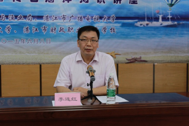 6月8日是"世界海洋日暨全国海洋宣传日",当天上午,湛江市海洋与渔业局和湛江市广播电视大学联合举办的海洋知识教育讲座在湛江电大附属财政中专礼堂举行。市海洋与渔业局、市电大等单位的领导、职工、师生和社区居民300余人参加了此次活动?;疃晌倚5澄榧?、校长李连红主特。