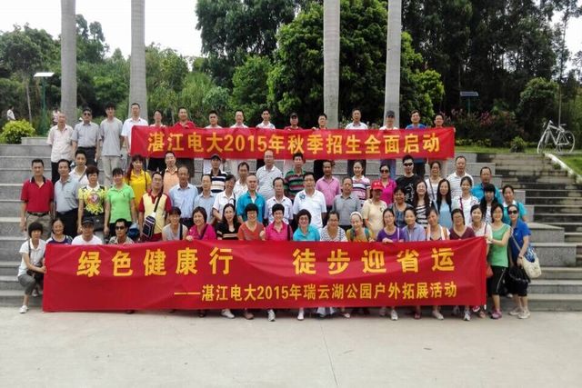 ,我校工会组织全校教职工在瑞云湖公园开展了"绿色健康行,徒步迎省运--湛江电大2015年瑞云湖公园户外拓展活动"。全校教职工齐聚瑞云湖公园,用徒步的方式环瑞云湖一周,践行绿色生活理念,迎接省运盛会,共享健康与欢乐。
