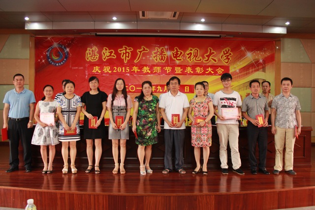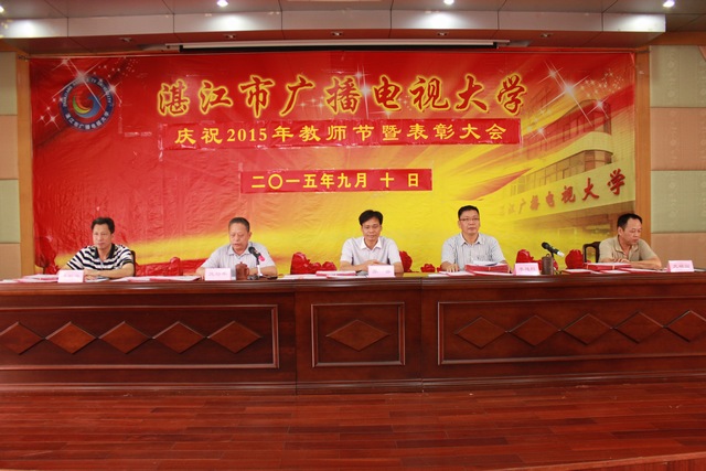 李连红校长在讲话中,首先代表学校向受表彰的优秀教师表示热烈祝贺,向辛勤工作的全市电大系统教育工作者表示节日的祝贺和亲切的问候。李校长从开放教育、招生规模教学质量、服务水平科研项目、校本研修培训工作、社区教育市县联动、系统建设及其他各项工作等方面回首了一年来的工作情况。他强调,湛江电大教育事业取得的成绩,凝结着全市电大系统教师和教育工作者的智慧和力量,是全体教职工辛勤耕耘、默默奉献的结果。他希望全体教职工学先进,弘师德,传播正能量爱学生,爱同事,做良师益友爱学习,勤钻研,提升自身素质及敬事业、乐奉献、在电大事业的发展中实现人生的价值。