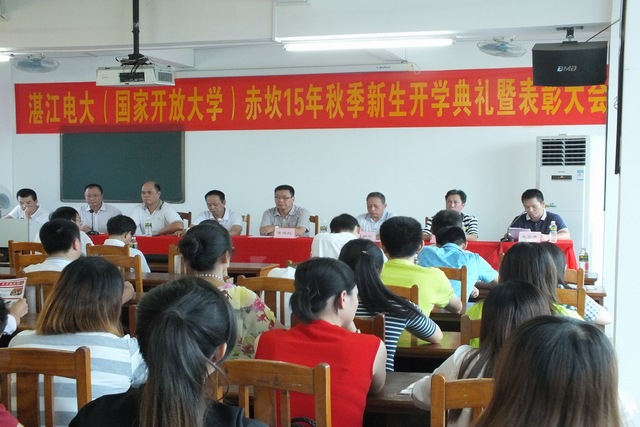 学校党委书记、校长李连红对新同学的到来表示热烈欢迎,祝贺大家正式成为教育部直属高校--国家开放大学的大学生。在致词中他介绍说,湛江电大2015年秋季开放教育录取943人。李校长对新生们的学习提出了具体的要求,他希望学生们及时转变角色,按时完成学习任务学会学习,掌握开放教育的学习方法学会做人,学会做事并且学以致用,丰富人生。