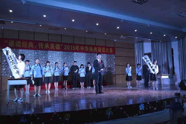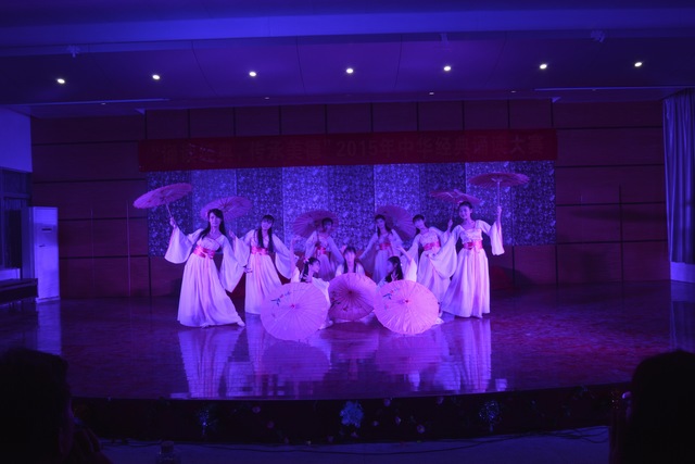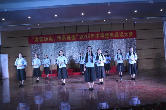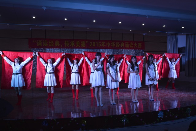 首先,李聪睿副校长做了热情洋溢的赛前讲话,对各位嘉宾和家长的到来表示热烈的欢迎,并对各班的精心排列表示肯定,希望各班赛出风格、赛出水平。随着主持人的宣布,比赛拉开了序幕,各班紧紧围绕"诵读经典,传承美德"这一主题,从各个角度充分展现了本班热爱读书、热爱生活的高尚情怀。14学前教育班表演的节目《水调歌头》独具一格,诵读中伴有舞蹈,得到了大家的一致好评15平面设计班表演的节目《少年中国说》融合了诵读和中华武术,更是把本次的比赛活动推向了高潮,赢得了观众和评委的阵阵掌声。经过将近一个半小时的激烈角逐,15平面设计班和14学前教育班获得了一等奖15学前教育A班、15大专会计工商班、15学前教育B班、15会计中专班和14会计中专班获得了二等奖一二等奖获奖节目直接获得进入元旦晚会资格。