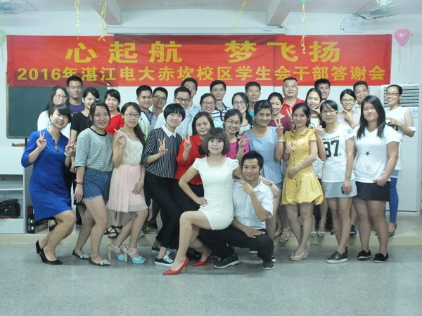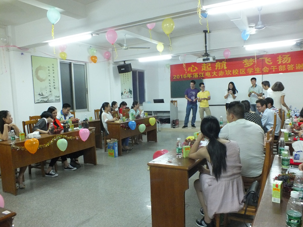 6月5日晚上,一场主题为"心起航,梦飞扬"的学生会干部答谢会在赤坎校区6楼隆重举行。赤坎校区主任李海红、湛江电大团委书记余杨奎、校本部团总支书记陈沉、赤坎校区团总支书记郑妍妍,以及赤坎校区学生会30多位学生干部参与了本次活动。