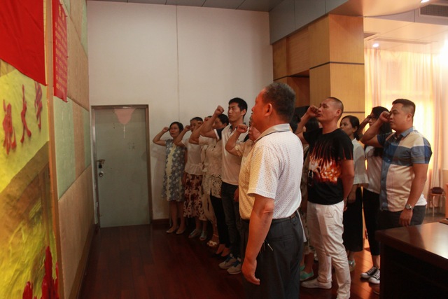 饶腊年副书记带领20名新入党党员面对悬挂主席台上的党旗宣誓,参会的全体老党员重温了誓词。