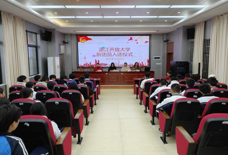 2025年12月25日,湛江开放大学2025年下半年新团员入团仪式在主校区举行。学校团委书记陆茜,团委副书记苏舟怡、陈虹元,中职教育团总支部书记信蕴,团干方乐源、武亚冬等老师出席仪式,34 名新团员庄严宣誓,正式加入中国共产主义青年团。仪式由中职教育团总支部书记信蕴主持。