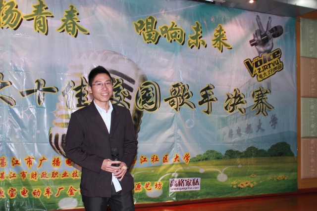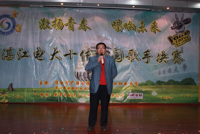 12月28日晚,湛江电大11楼学术报告厅座无虚席,由湛江市广播电视大学团委主办,欧宝电动车厂金耐牌电动车、高格家私、源艺坊赞助的2013年湛江电大"十佳校园歌手"大赛决赛在这里隆重举行。湛江电大党委书记、校长李连红、共青团湛江市委副书记王敦滟等领导、嘉宾与数百名师生一同观看了决赛。