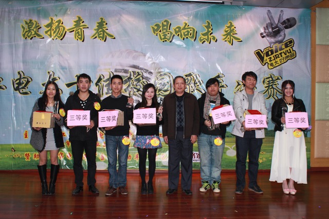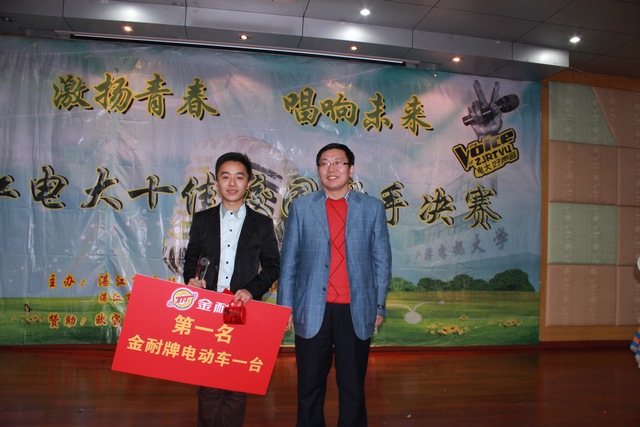 来自13秋会计班的许仲权同学凭借一首《海阔天空》荣获本次十佳校园歌手大赛的第一名,奖品由欧宝电动车厂赞助价值3600元的金耐牌电动车一辆。
