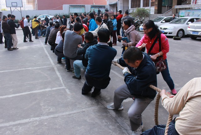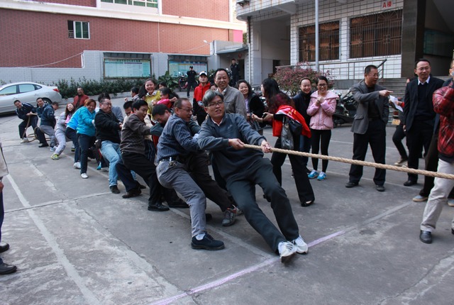 在新春佳节即将到来之际,我校工会在校本部操场举办了教职工男女混合拔河比赛。本次比赛以四个党支部为参赛主体,每个支部及相关科室各选出12名队员参赛。在啦啦队震耳的助威呐喊声中,队员们鼓足了劲,涨红了脸,抓紧了绳,全力以赴,努力争夺,现场气氛十分热烈。学校党委书记、校长李连红等校领导上场参加了比赛。