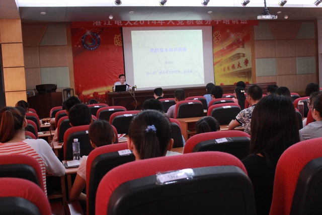 4月26日,我校2014年入党积极分子培训班在霞山校本部11楼学术报告厅开班,集中培训为期2天。来自校本部、主校区和赤坎校区84名师生参加了培训。学校党委书记、校长李连红、副书记饶腊年、副校长尤祖国、王康生亲自为学员上党课,进行了党的知识的教育,让学员了解党的性质、宗旨、纲领、指导思想、基本路线、方针政策和作风纪律,认识入党的程序和努力的方向,端正入党动机。李连红校长对参加此次培训的师生提出了三点要求:一要坚定信念,从根本上了解党,建立起对党的真情实感二要学以致用,学会用马克思主义理论方法指导日常学习生活三要严格要求,在日常学习中充分发挥先锋模范作用。