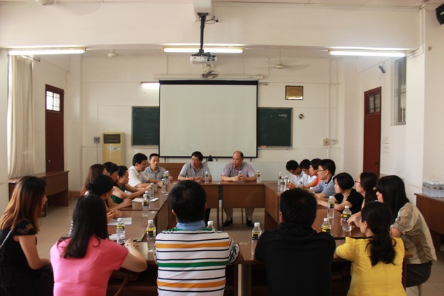 李校长对中山电大同仁表示热烈欢迎,感谢他们来我校"传经送宝",并简要介绍了我校近年来的发展情况和下一步的发展思路。随后双方就教学、招生、中职教育、培训、团委及学生工作等方面进行了坦诚、积极的交流,重点围绕在新形势下电大的转型和发展这一焦点问题进行了探讨。大家一致认为,要将学历教育和职业技能教育结合起来,为当地行业企业培养"留得住,学得好,用得上"的实用型人才,形成良好的社会口碑同时,要提升内涵建设,通过与当地政府或机关部门合作,灵活开展各种短期培训,扩大电大在社会上的影响力。