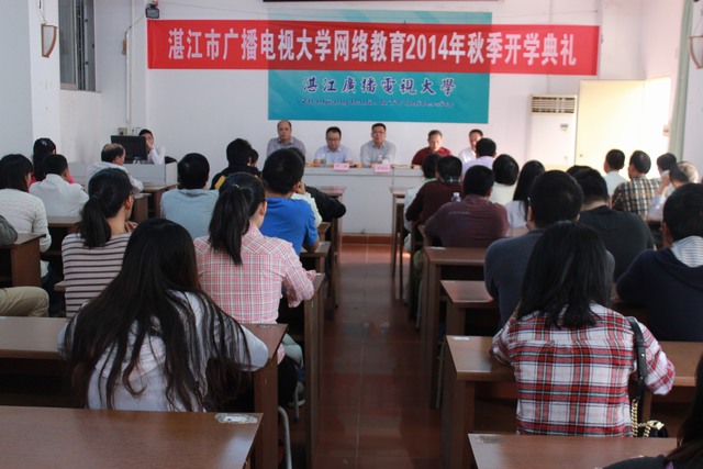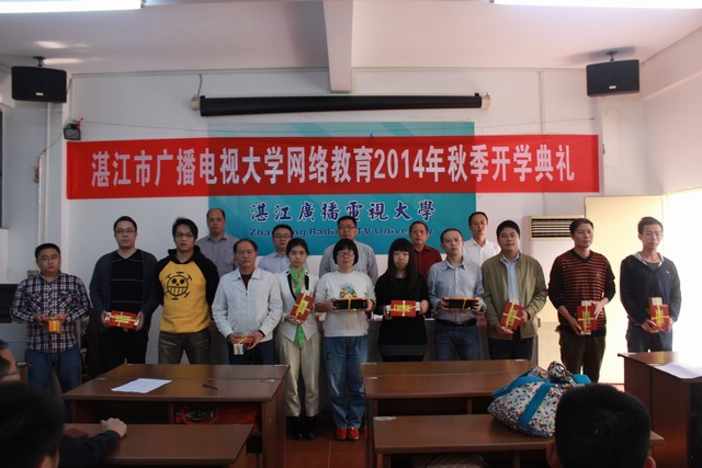 11月15日上午,我校在302多媒体教室举行了2014年秋哈工大、奥鹏网络教育(1409批次)新生开学典礼。学校党委书记、校长李连红等校领导和100多名新学员参加。开学典礼由学校党委副书记饶腊年主持,大会对13位网络教育优秀学员进行了表彰。会上,李连红校长向新同学们介绍了国家开放大学、湛江电大的基本情况以及哈工大、奥鹏教育的模式,并对新学员们提出了学习要求。目前,我校与西安交通大学、东北师范大学、中国石油大学、中国医科大学、哈尔滨工业大学等高校合作举办网络教育,专业涵盖面广。