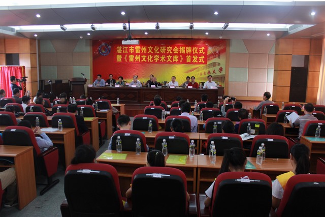 湛江市雷州文化研究会正式揭牌是湛江市社会科学界的一大盛事,湛江市政协主席邓碧泉为雷州文化研究会题词--"雷韵新声"。市政协原主席、雷州文化研究会会长陈光保,原市委组织部副部长、雷州文化研究会常务副会长陈华江,市社会科学界联合会主席余伟民,市文联主席邵峰等有关负责人为研究会揭牌?;嵘匣咕傩辛恕独字菸幕跷目狻肥追⑹剑愣Q蟠笱难г涸撼?,广东省雷州文化研究基地主任、教授张学松介绍了《雷州文化学术文库》丛书的有关情况。