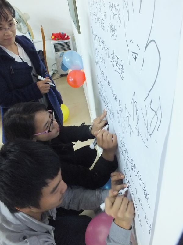 活动结束时学生会干部纷纷写下对学校、对学生会、对朋友的祝福?;疃勾蠹壹由盍吮舜酥暗母星?,也感受到了学生会大家庭的温暖和团结。