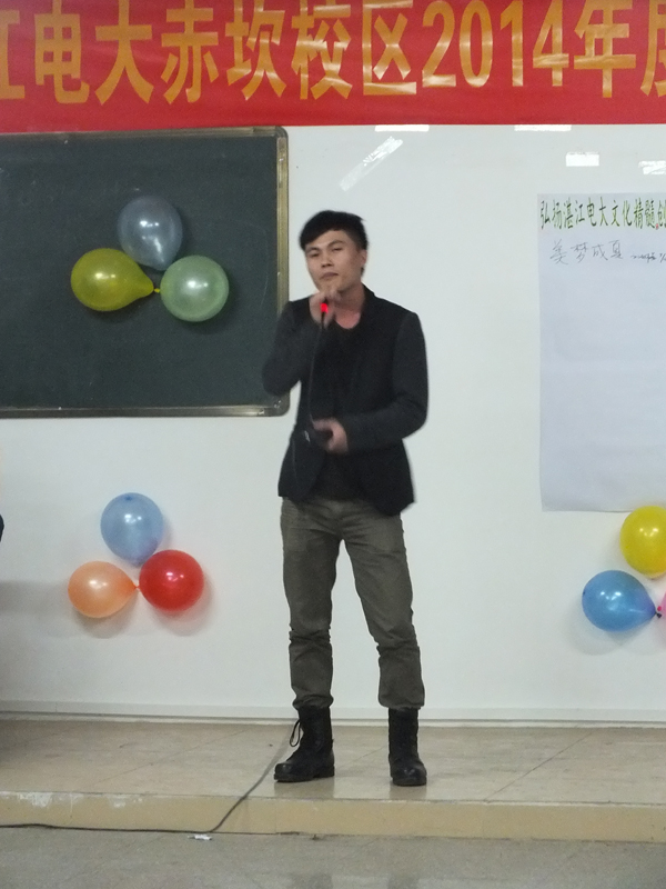 在热情高涨的气氛中,活动进入即兴表演环节。大家都跃跃欲试,一展歌喉,大家纷纷为表演者喝彩,送上阵阵掌声。体育部庞伟文同学的一曲大家耳熟能详的《光辉岁月》引发了现场的大合唱。