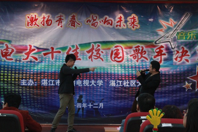 本次决赛共有20名选手参加, 经过激烈角逐,13秋会计班许仲权演唱的《浮夸》获得一等奖,14秋工商管理班黎俊凯《Hello》、13秋工商管理班陈政宇《对不起我爱你》、14秋商务英语班陈洁莹《没那么简单》获得二等奖,14秋英语专科班黄文挺、13秋金融本科班卓志缤、14春工商管理班庞伟文、14春行政管理班黄玲玲、13秋学前教育班谢丽华、13春行政管理班颜晓钰、陈文强获得三等奖。李连红校长等领导分别为获奖选手颁奖。比赛活动丰富学生、教职工的文化生活,推动校园文化建设更上新台阶。