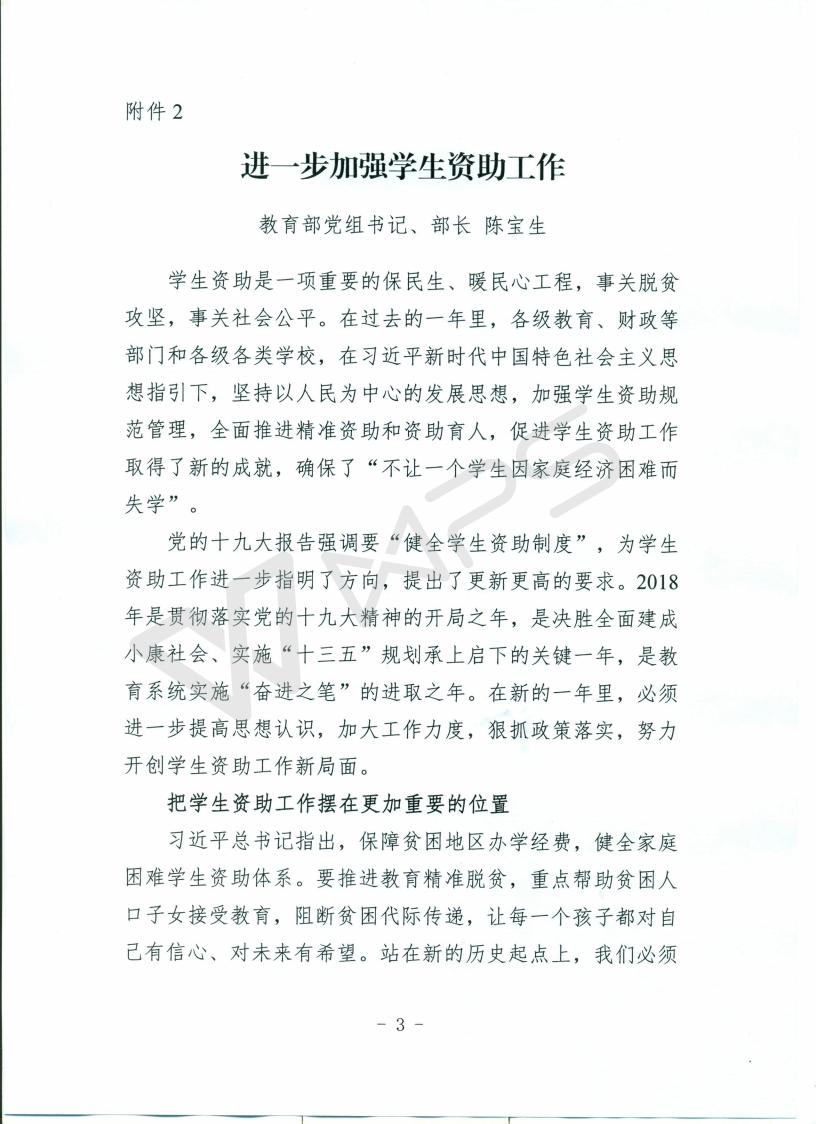 (教助中心[2018]25号)关于印发陈宝生同志《进一步加强学生资助工作》一文的通知
