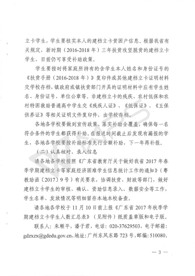 粤教助办函[2017]64号广东省教育厅办公室关于报送2017年我省建档立卡等家庭经济困难学生人数的通知