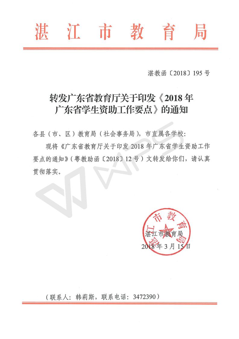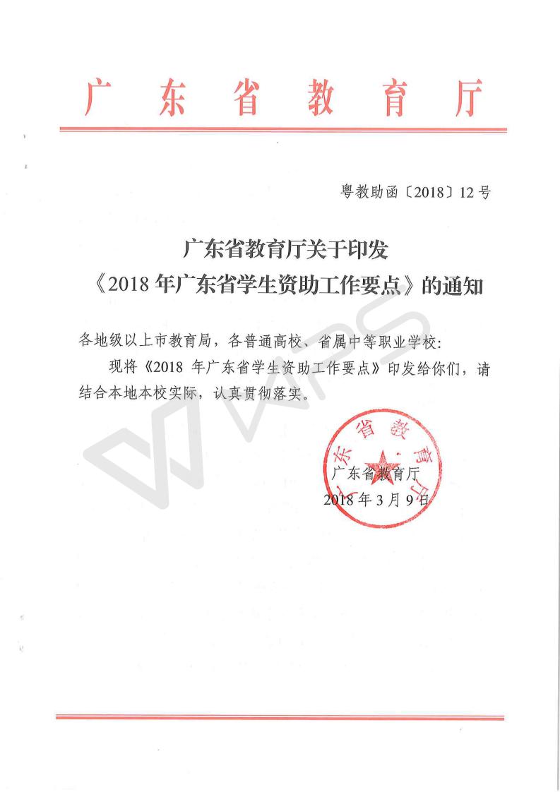 转发广东省教育厅关于印发《2018年广东省学生资助工作要点》的通知