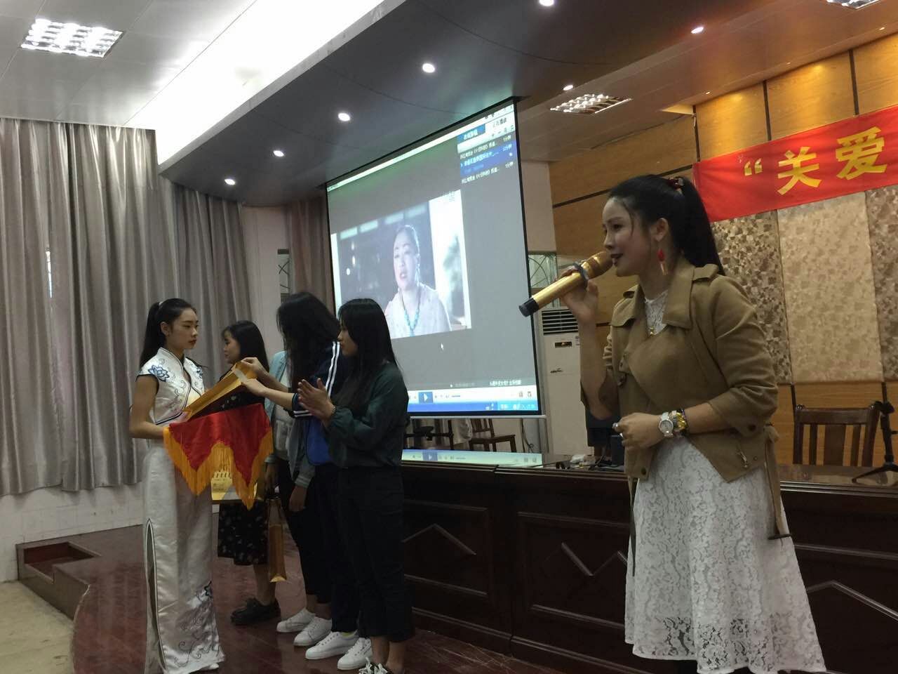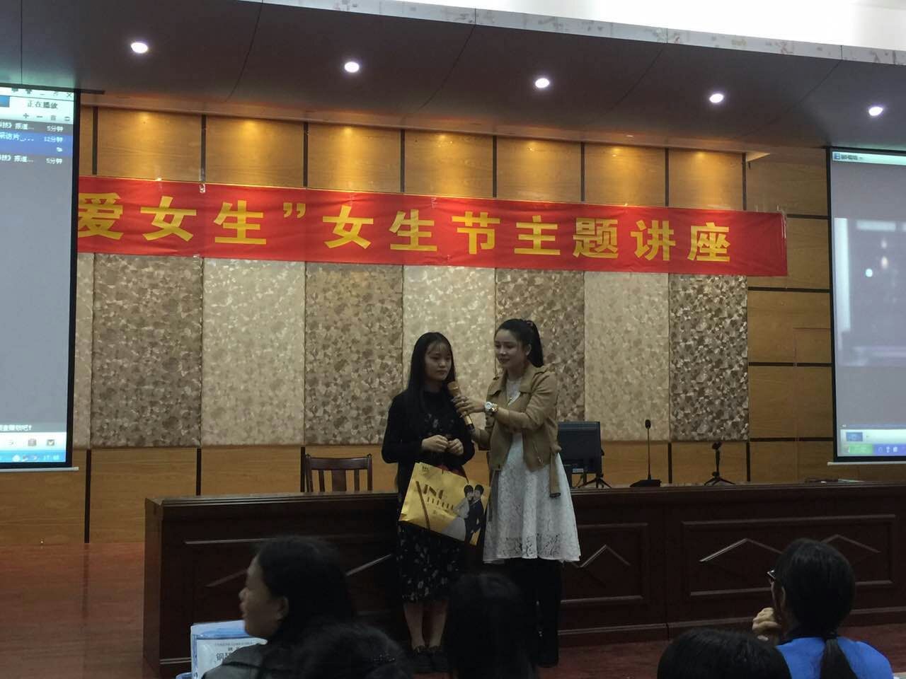 6日下午,电大主校区在礼堂举办了"关爱女生"三?七女生节主题讲座。学校有幸请到湛江幸福狐狸第一人刘信凤老师及本校校医黄权芳老师主持本次讲座,主校区所有女生参加了本次讲座。