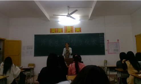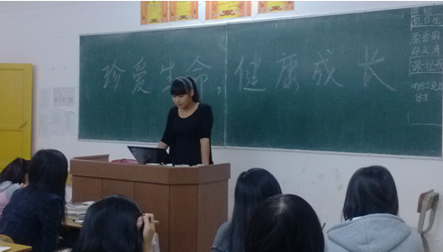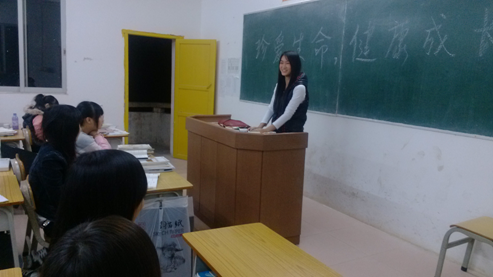 (图2班长谢霞同学在谈论如何建立良好的心理素质)