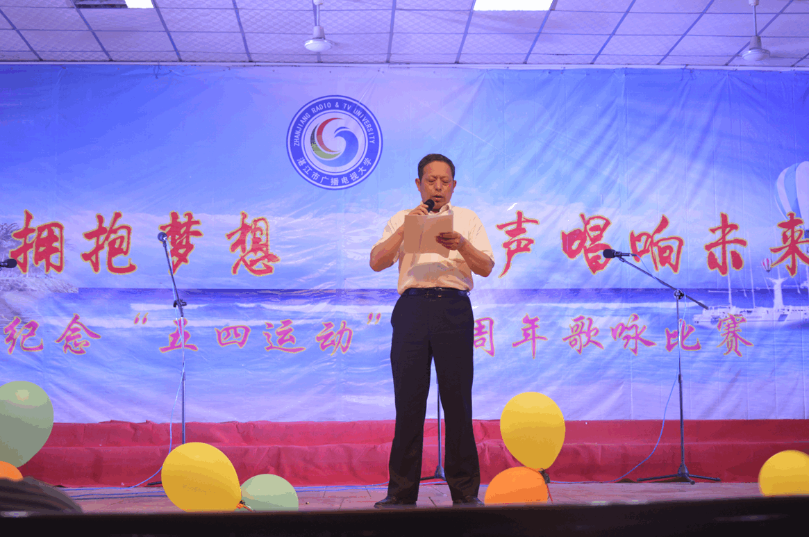 "激扬青春,放飞梦想"--为丰富学生业余文化生活,加强校园文化建设,5月25日晚,由湛江中专部承办、湛江电大团委协办的学生文艺晚会在湛江电大主校区礼堂隆重举行。湛江电大党委书记、校长李连红等学校领导、中层干部、主校区全体老师以及部分学生近400人观看了演出。学校党委书记、校长李连红讲话晚会上,李连红校长发表了热情洋溢的讲话,他勉励同学们要珍惜学习机会,刻苦学习,增长本领,学习、学习、再学习,进步、