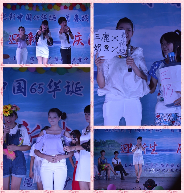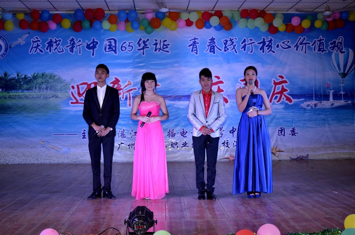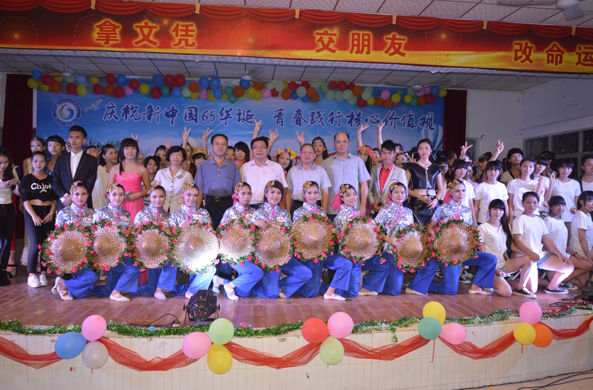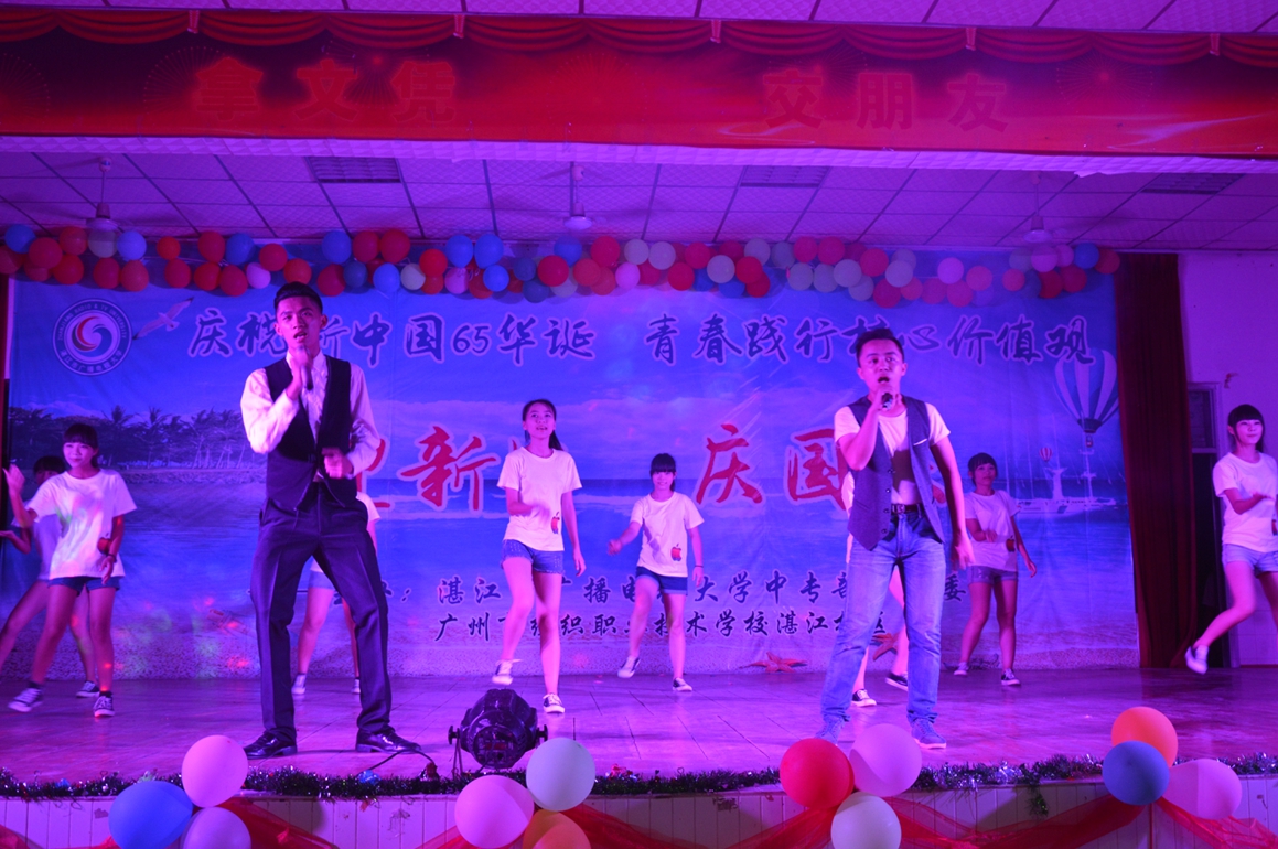 为欢迎2014级新生,庆祝伟大祖国65周年华诞。由中专部和团委举办的"迎新生,庆国庆"文艺晚会于9月29日晚在中专部礼堂隆重举行。