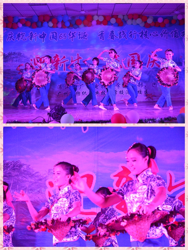 在全校师生喜迎国庆节之际,主校区"迎新生,庆国庆"文艺晚会为我校校园再添绚丽的一笔。本次文艺晚会丰富了校园文化生活,营造浓厚的校园艺术氛围,体现了我校学子的文化艺术修养以及朝气蓬勃的精神风貌。