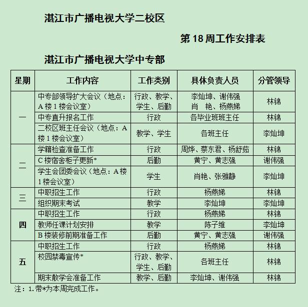 主校区和中专部第18周工作安排