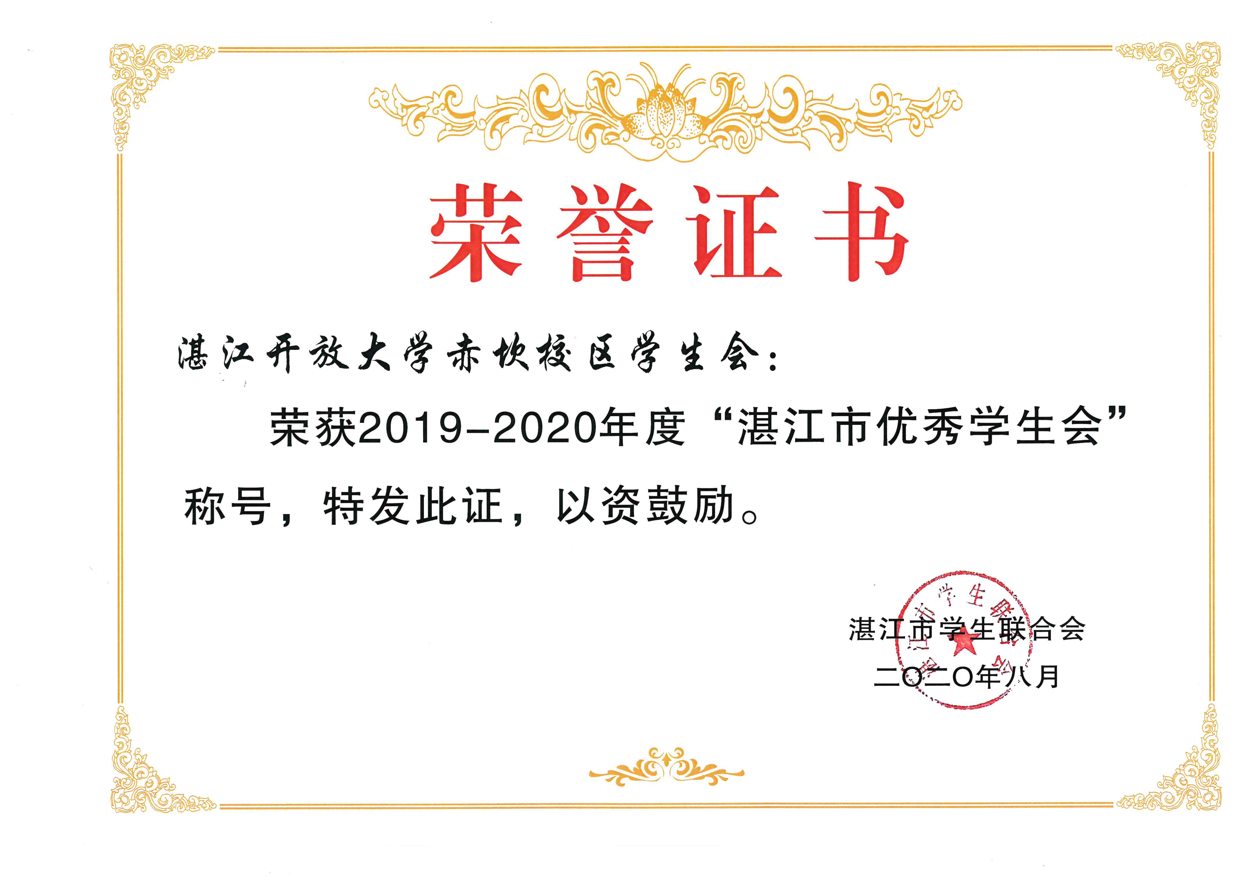 1.湛江开放大学赤坎校区学生会荣获2019-2020年度“湛江市优秀学生会”称号;