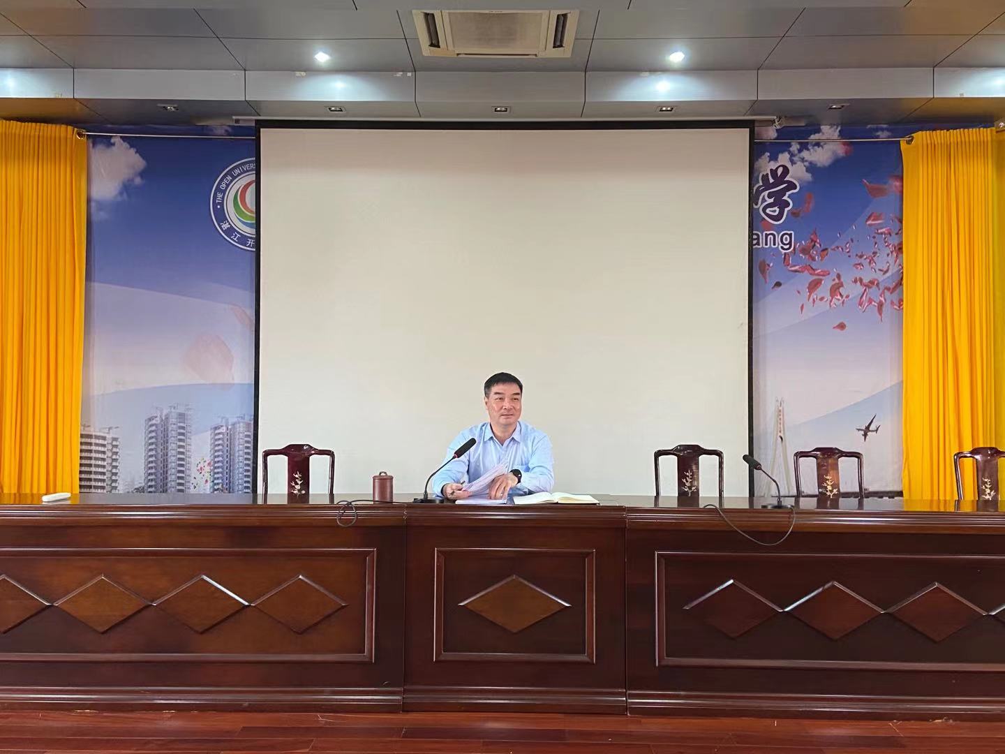 3月5日下午,湛江开放大学召开了全校教职工大会,会议由党委书记、校长许文滔同志主持?;嵋楣卜治礁鲆槌探?,一是传达全市党史学习教育动员大会、湛江市"营商环境整治提升年"活动动员大会等重要会议精神,二是阶段性通报反馈学校巡察整改情况。