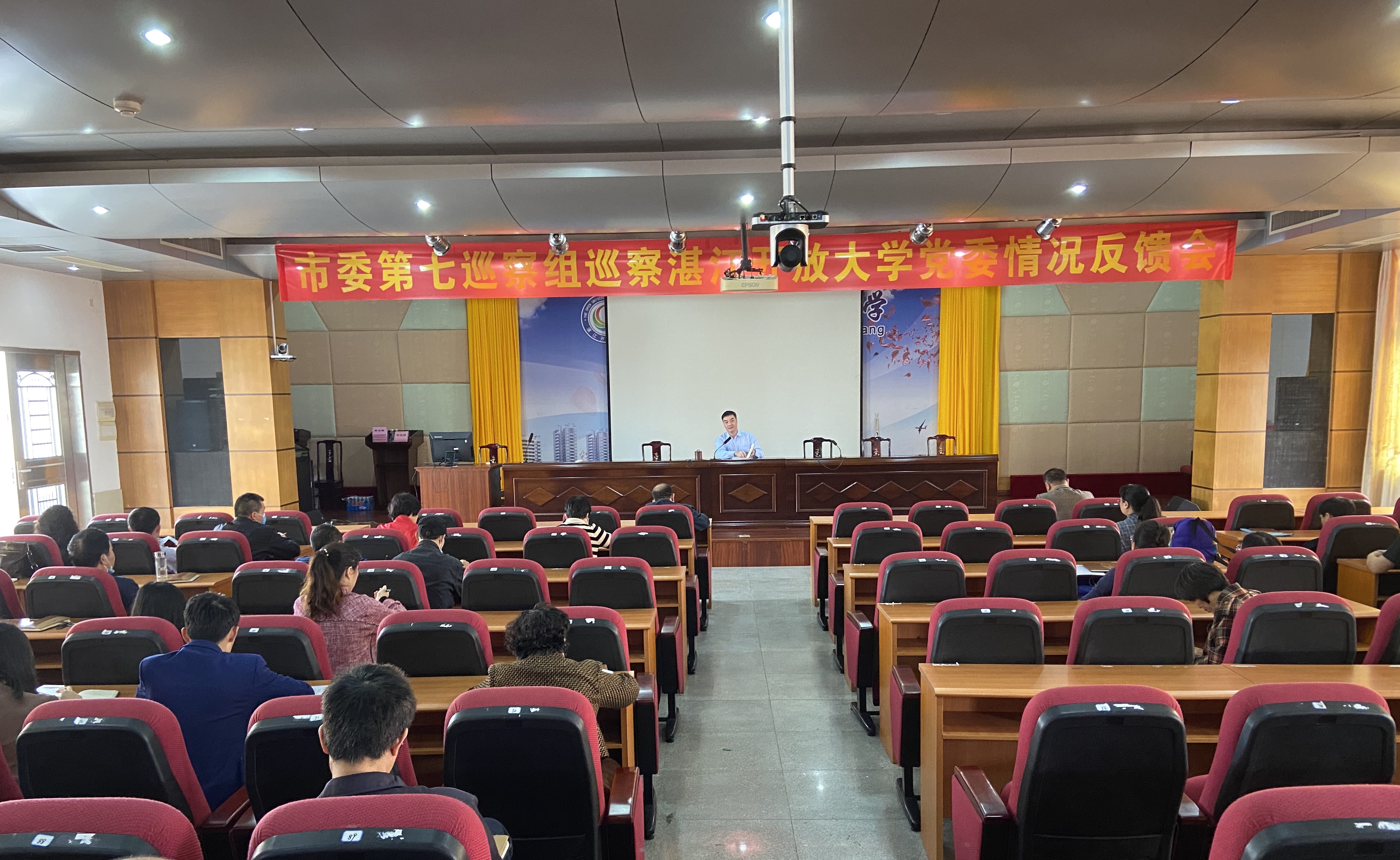 会议的第二项议程,许文滔同志宣读了《湛江开放大学党委(组)巡察反馈问题(整改清单)整改进度表(共26条)》以及市委组织部就我校选人用人工作情况的反馈意见,就学校巡察整改情况向全校教职工进行阶段性通报反馈。2020年整改工作开展以来,我校高度重视巡察反馈意见整改落实工作,持续深入推进问题整改,持续狠抓成果运用转化,持续促进学校的各项事业的健康发展。许文滔同志在情况反馈中强调,为做好巡察整改每一项工作,全校必须上下一心,心往一处想,力往一处使,保持政治定力,继续紧盯整改重点,发扬"钉钉子"精神,狠抓整改工作全面落实,务求按照整改进度表将整改工作落到实处,力求不遗漏,按时保质完成,并以此次整改工作为契机,不忘初心、牢记使命,锐意进取、担当作为,突出在整改成果的运用和转化上发力,切实将反馈意见的整改工作与贯彻落实中央、省市会议精神结合起来,努力在新征程中起好步、走在前,创造出经得起实践检验,经得起历史和人民检验的新业绩。