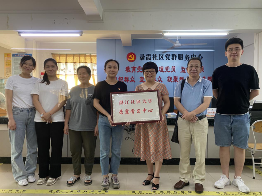 2021年5月19日下午,湛江开放大学、湛江社区大学在录霞社区党群服务中心举行隆重的授牌仪式,成立"湛江社区大学录霞学习中心"。湛江开放大学党委副书记熊焱高、培训科科长高伟红、录霞社区黎诗琦书记等参加了授牌仪式。期间,熊副书记向黎书记详细了解录霞社区的管辖区域和常住人口等情况。