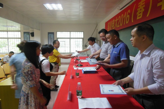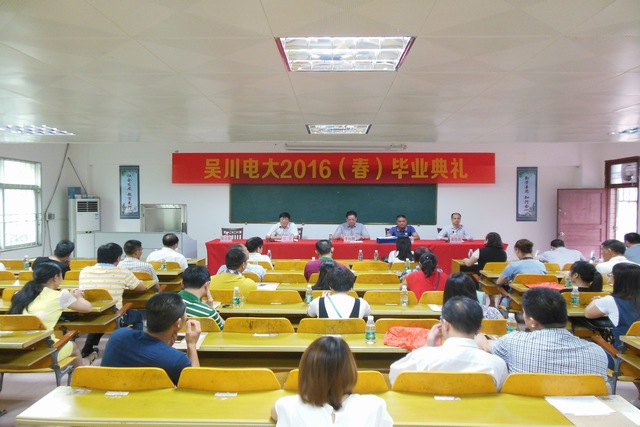 (吴川电大 林运报道)5月27日下午,吴川电大举行了2016年春季"一村一"农村管理大专班毕业典礼。电大校长李向明,副校长李木保、江丰、龙伟良出席了毕业典礼。各室处主任,毕业班主任、教师以及毕业生近50人参加了毕业典礼。毕业典礼由江丰主持。