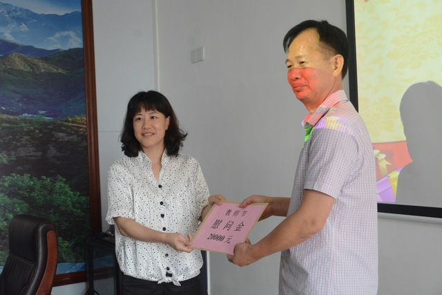 会后,刘志红代表县委、县政府给遂溪电大送上节日慰问金。