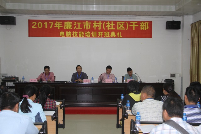 【廉江开大办公室 报道】11月6日上午,在廉江开放大学报告厅举行了2017年廉江市45岁以下村(社区)干部电脑技能培训开班典礼,第一期学员140人和廉江开大领导班子成员、市委组织部基层办相关领导参加会议,会议由市委组织部组织二室副主任蔡柏均主持。