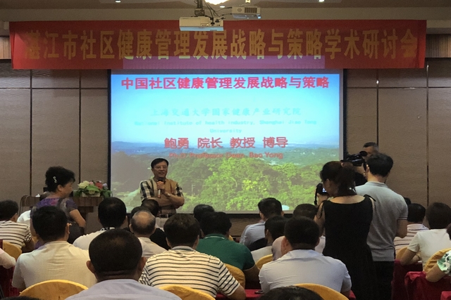 会议邀请了中国社区健康联盟主席、上海交通大学国家健康产业研究院院长鲍勇院长进行题为《社区健康管理发展战略与策略》的学术分享。鲍院长阐述了社区健康管理的概念和社区健康管理的发展历程,探讨中国目前的老龄化现状和人口结构、医改等,并指出湛江健康管理事业可关注的重点。演讲过程,鲍院长积极与现场观众进行互动,现场气氛活跃烈。