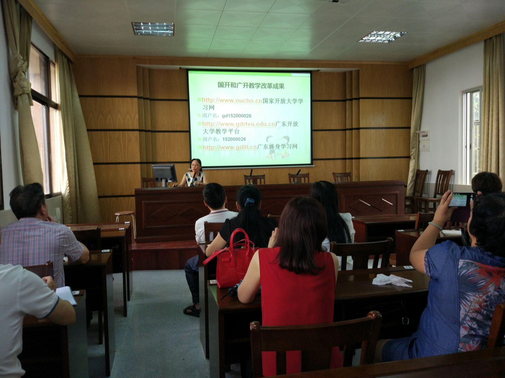 首先,办公室苏秀敏副主任向大家详细说明了今年专业技术人员继续教育学习的内容情况及具体要求。其次,文法教研室关一谱副主任向大家作了题为"互联网+教育"的讲座。关老师结合电大的教学特点,向大家讲述了"互联网+教育"的具体内容,指出"互联网+教育"≠在线教育,并详细讲授了教育发展的两种模式:1.互联网+A--增强原来的教育模式2.互联网+B--颠覆原来的教育模式。