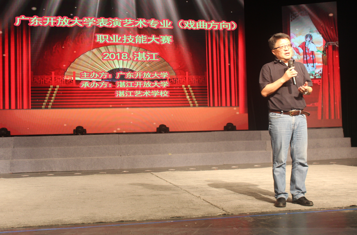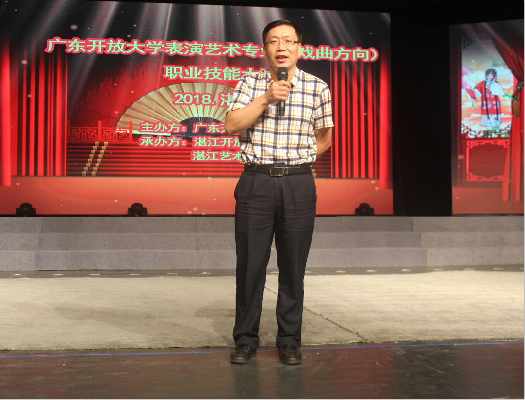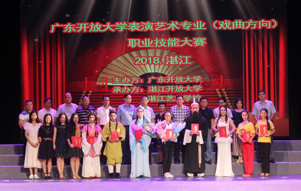 本次比赛活动由广东开放大学主办,湛江开放大学、湛江艺术学校承办,来自湛江、雷州、茂名、海丰、汕尾、澄海、五华等市县的20多名该院表演艺术专业戏曲方向的学员共表演了10个剧目,剧目包括了粤剧、白字戏和雷剧等岭南地区稀有剧种。最后,经过激烈的角逐,剧目《鹰峰岭选段》获得了本次比赛的一等奖《碧??裆臁泛汀斗抛咴?暗访》获得了二等奖《小放牛选段》、《长生殿选段》和《中国公主杜兰朵》获得了三等奖。