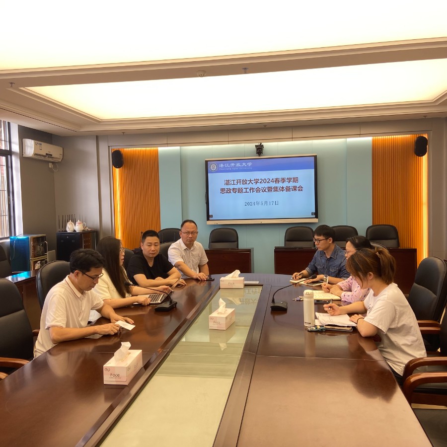5月17日下午,湛江开放大学思政课教师团队在主校区一号教学楼10楼会议室召开了2024年春季学期思政专题工作会议暨集体备课会,全体思政学科组教师参加了会议。