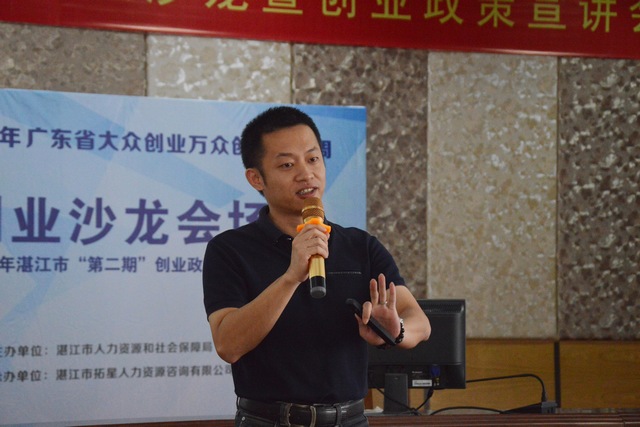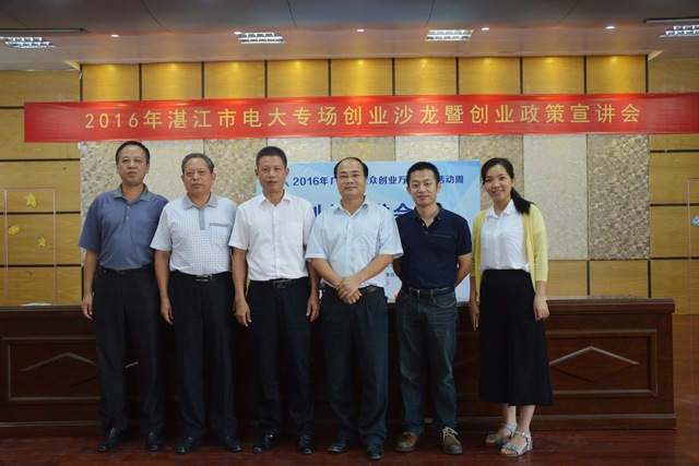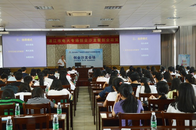 2016年10月16日上午,湛江市人力资源和社会保障局与我校举办了一场"双创活动"宣讲会,受邀出席的有市人社局领导、我校饶腊年书记和尤祖国副校长、湛江市佳境文化传播有限公司董事长杨进卫、广东天润商业有限公司经理詹峰及我校各年级的同学,共计两百余人参与了此次大会。