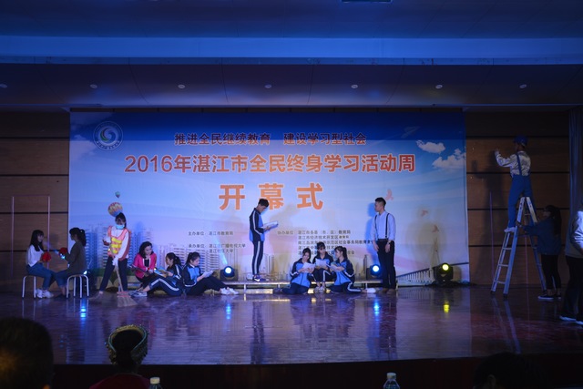 开幕式由湛江市教育局主办,湛江市广播电视大学、湛江社区大学承办,湛江市各县(市、区)教育局、湛江经济技术开发区教育局、南三岛滨海旅游示范区社会事务局教育主管部门、湛江市各中等职业技术学校、湛江市金融消费权益?;ち匣嵝?。本次活动周以"推进全民继续教育,建设学习型社会"为主题,旨在通过开展多样化的学习活动,大力宣传终身教育的思想,推动全民树立终生学习理念,建设学习型社会?;疃奔湮?016年12月12日至16日。在接下来一周或更长一段时间里,我市将围绕"推进全民继续教育,建设学习型社会"的主题,开设一系列免费的公益课程和讲座,为老百姓提供丰盛的知识盛宴。
